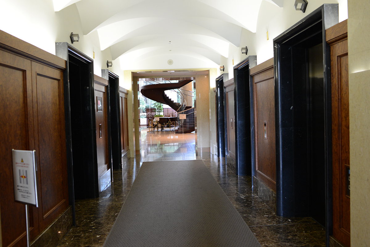 エレベーターは高階層専用が用意され、朝の混雑を緩和しています。