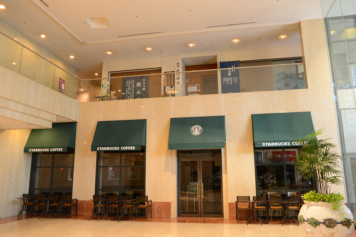 1階にはスターバックス コーヒーが、2階には小料理屋があり、朝のカフェや同僚とのランチを楽しめます。