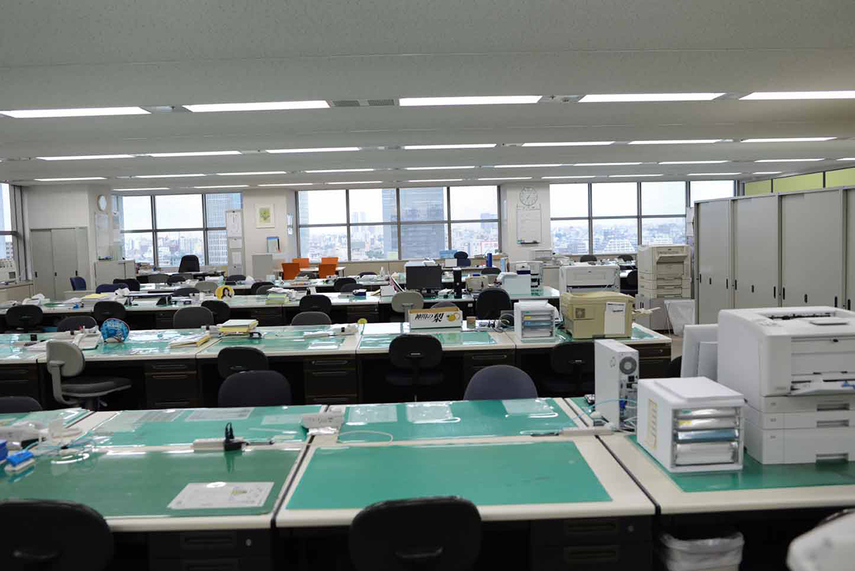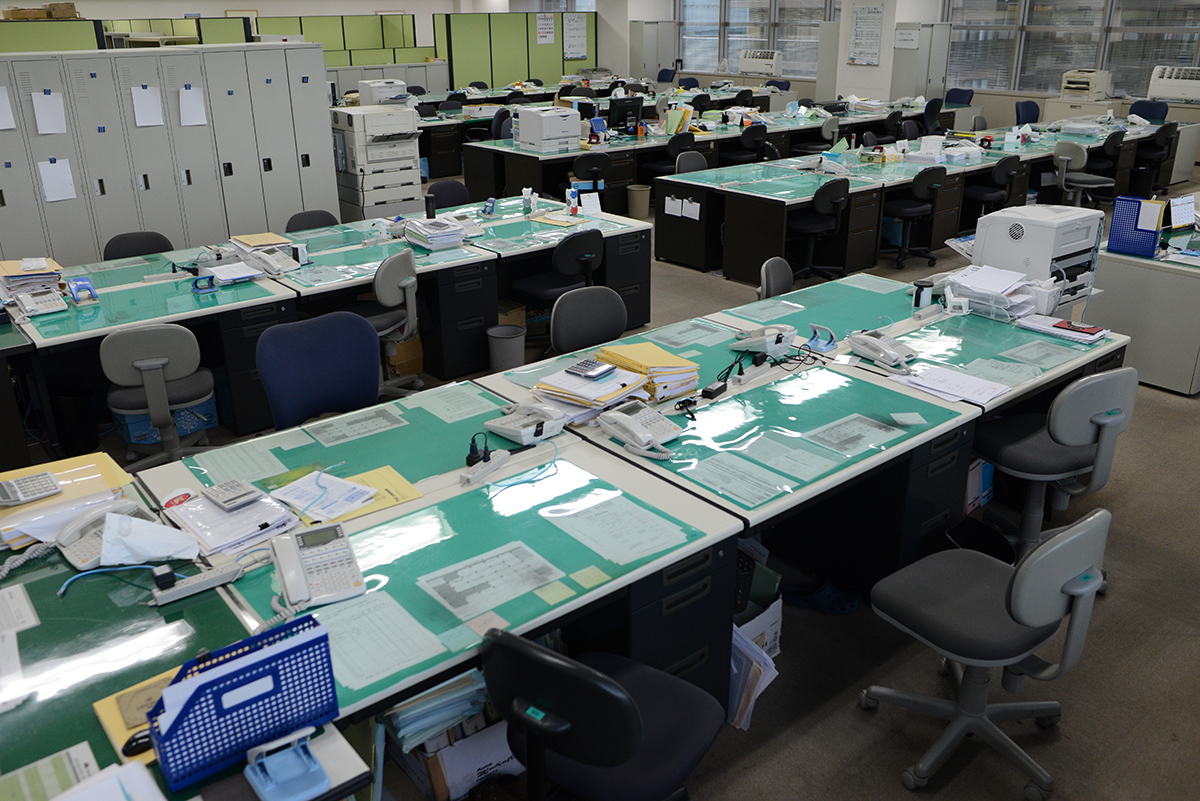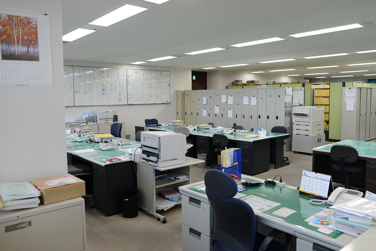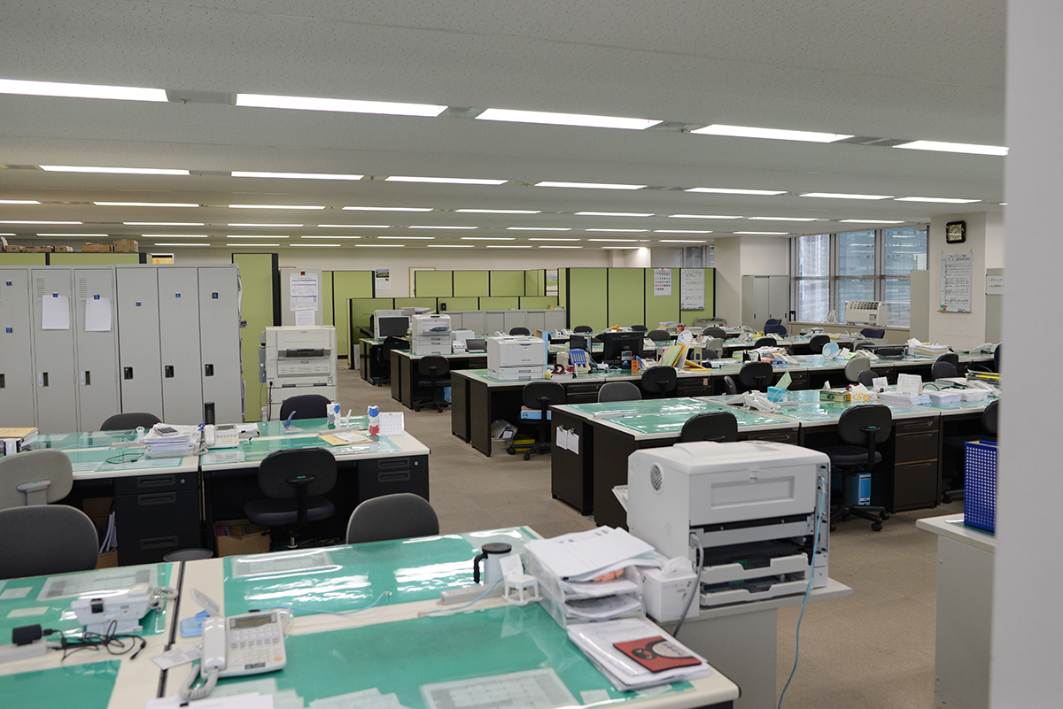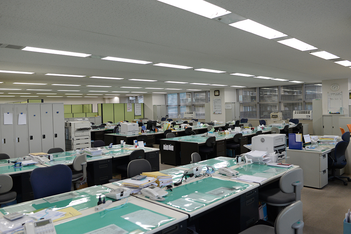 ご覧のとおり、座席の間には壁がなく、ベテランからフレッシュまで同じ室内で仕事をしています。